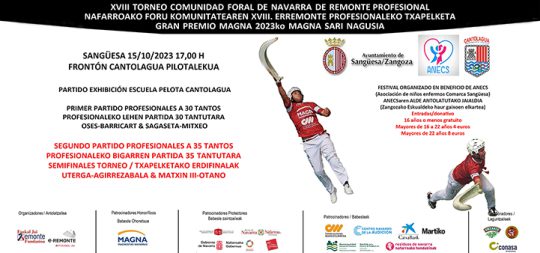 El evento se celebra el domingo 15 a partir de las 17:00 h. y la recaudación en beneficio de ANECS. Comenzando con un partido de exhibición de la escuela de pelota del Club Deportivo Cantolagua