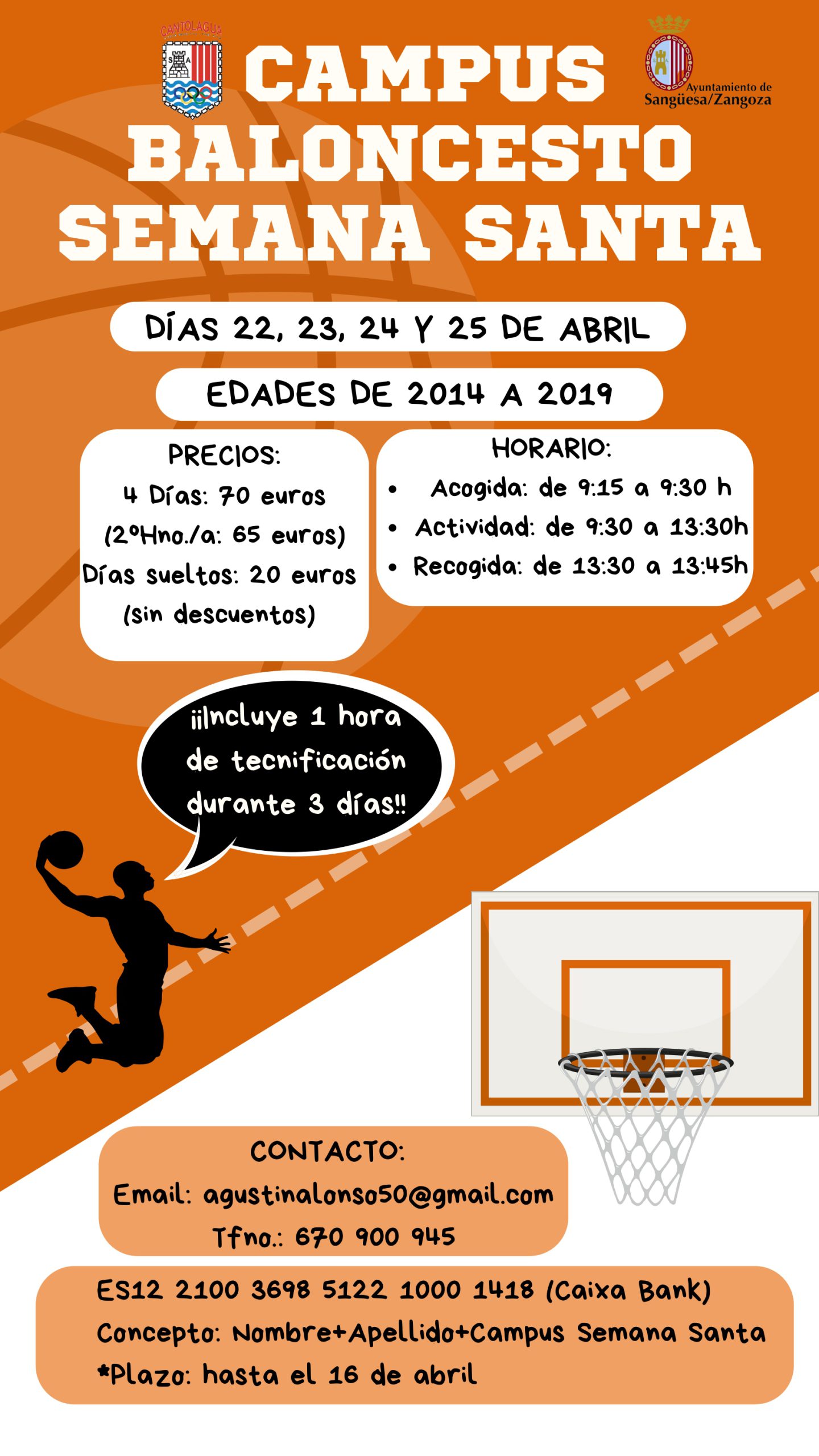 CAMPUS BALONCESTO CANTOLAGUA DEL 22 AL 25 DE ABRIL EN EL POLIDEPORTIVO MUNICIPAL