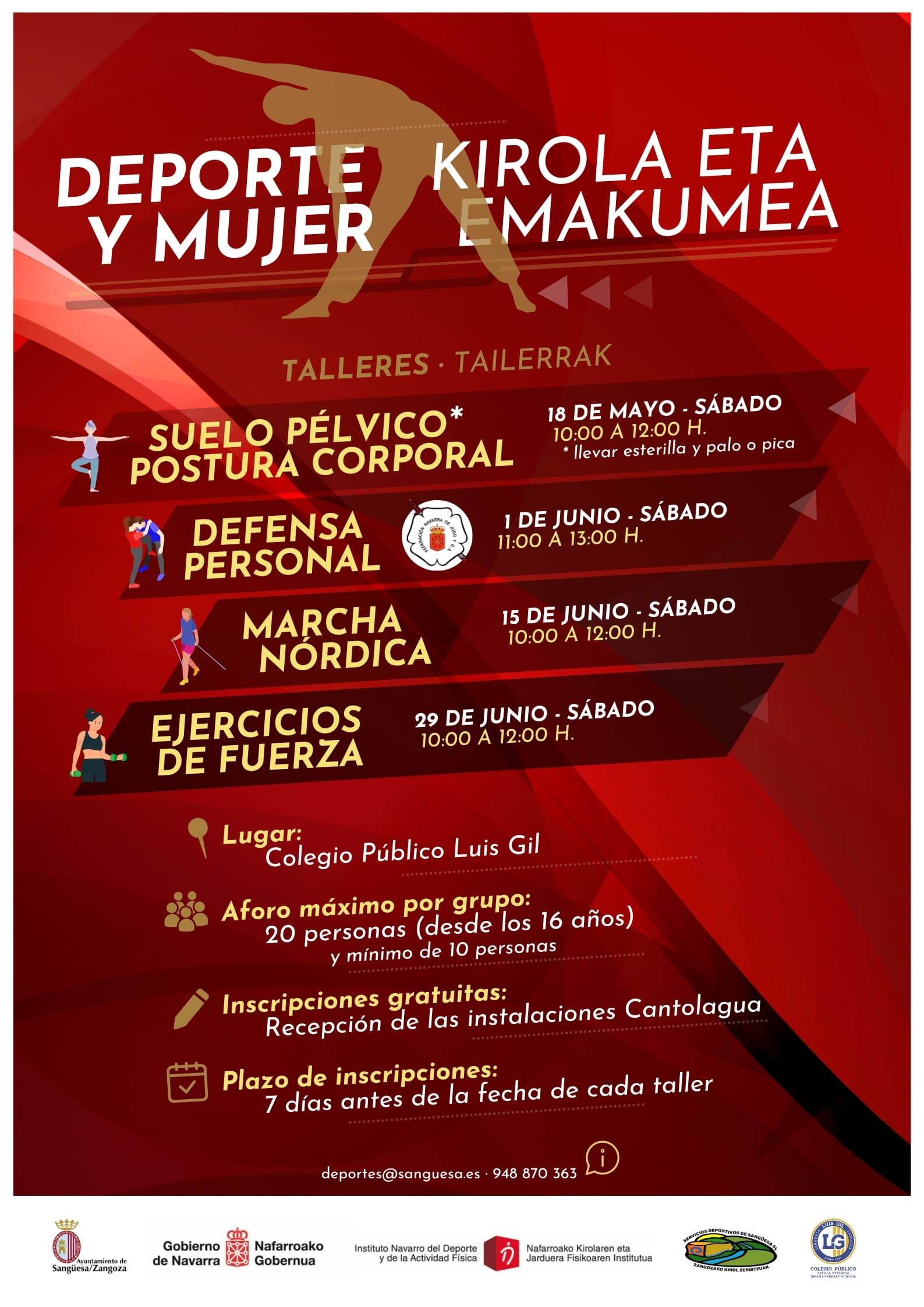 También te puedes informar en el Área de Deportes del Ayuntamiento de Sangüesa, Calle Mayor 31, deportes@sanguesa.es