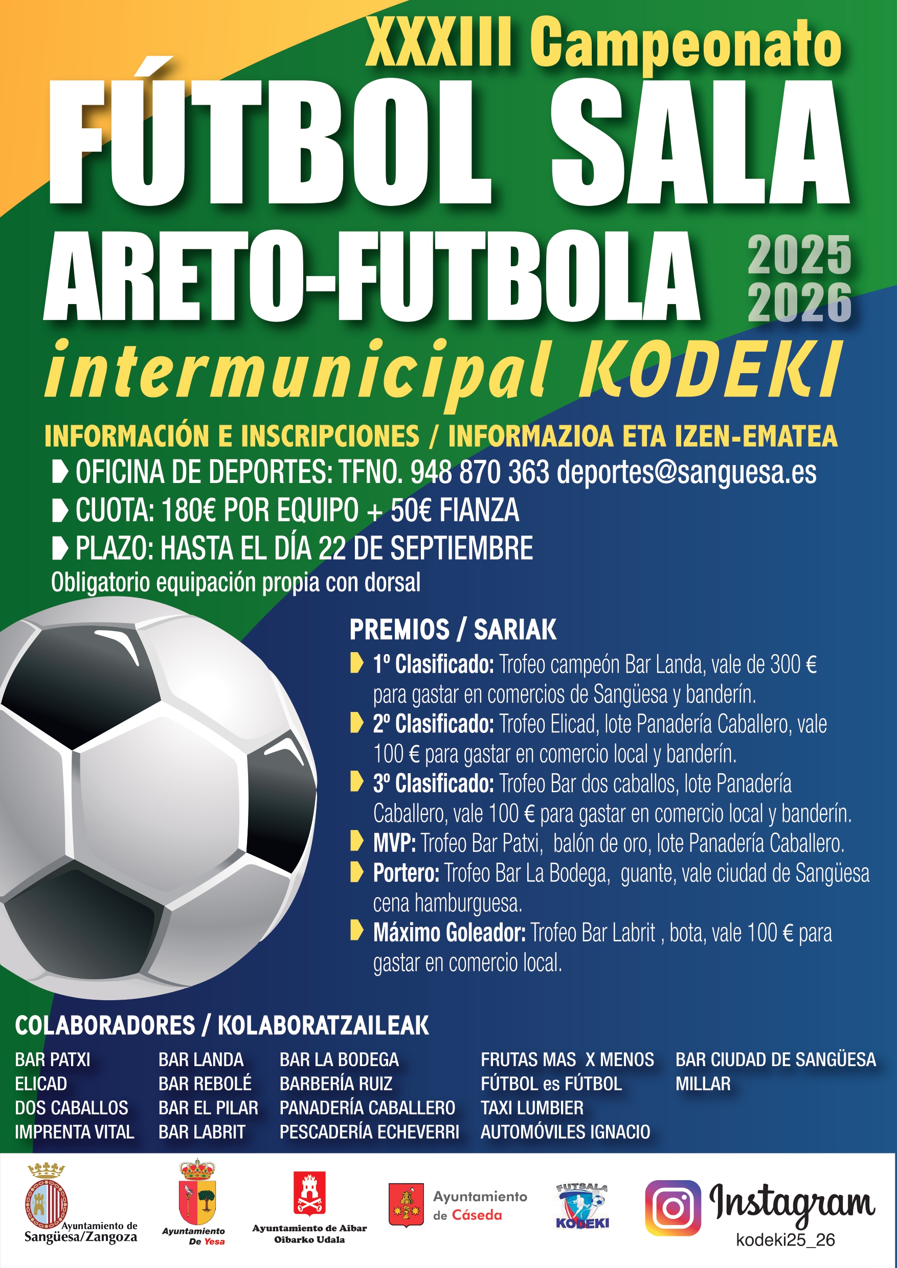 XXXIII Fútbol Sala Intermunicipal KODEKI 2025.2026 – Ayuntamientos de Sangüesa / Zangoza, Aibar/ Oibar, Cáseda y Yesa