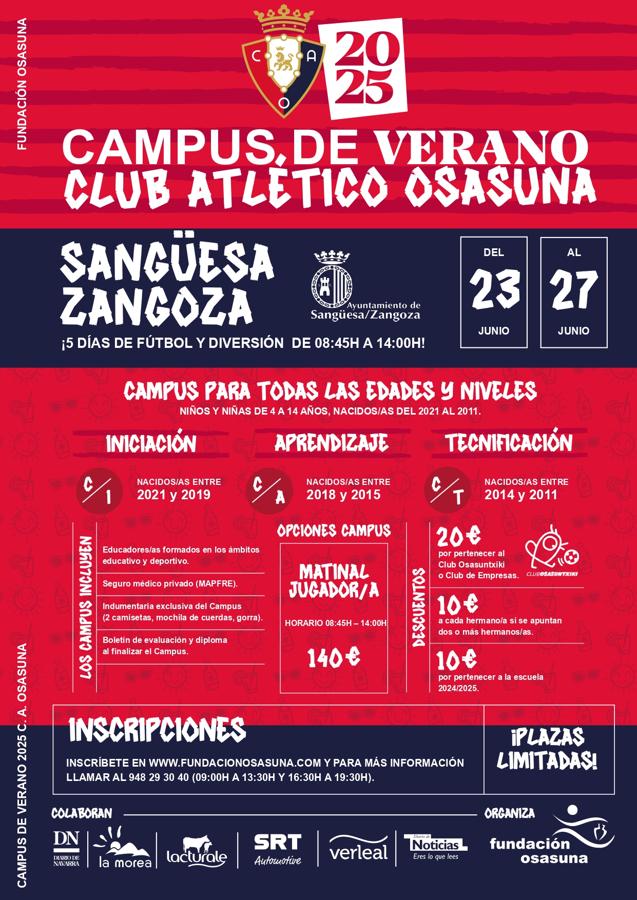 CAMPUS DE VERANO 2025. C. A. OSASUNA. 5 días de fútbol y diversión de 8:45 h. a 14:00 h.