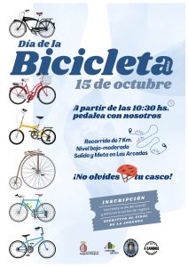 El próximo 15 de octubre celebramos el Día de la Bicicleta con un recorrido familiar de 7 Km. con salida desde Las Arcadas a las 10:30 hs.