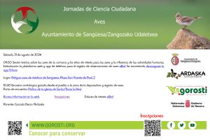 La Asociación Ardaska y la Sociedad de Ciencias Naturales Gorosti, con la colaboración del Gobierno de Navarra y el Ayuntamiento de Sangüesa, organizan las Jornadas de Ciencia Ciudadana centradas en las aves.