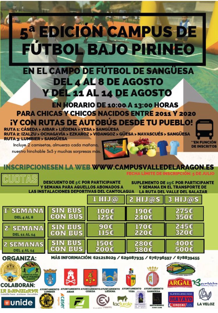 También te puedes informar en el Área de Deportes del Ayuntamiento de Sangüesa / Zangoza, Calle Mayor 31, deportes@sanguesa.es