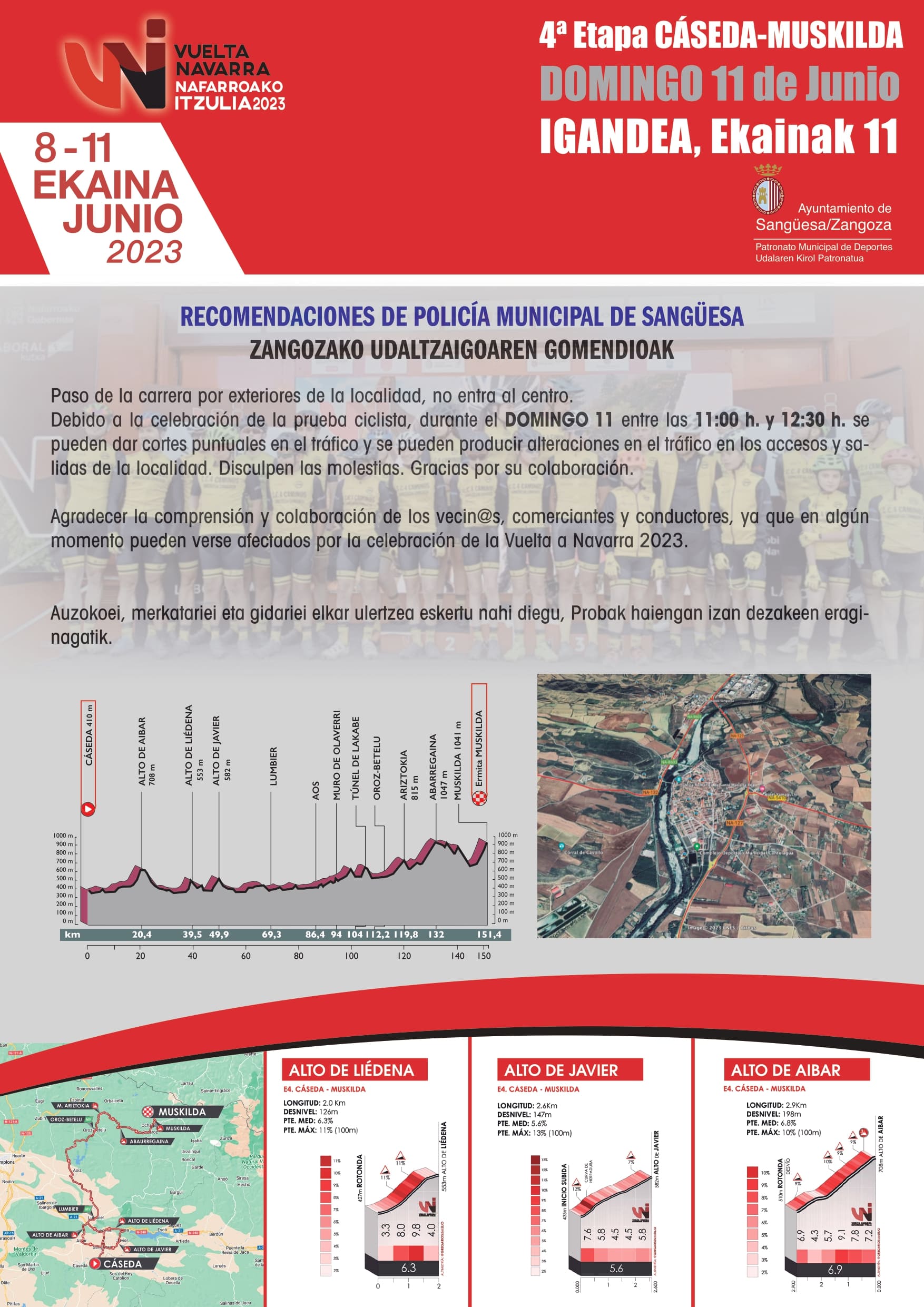 La 4ª etapa que saldrá de Cáseda pasara por exteriores  de Sangüesa / Zangoza entre las 11:00 y 12:30 h. y finalizara en Muskilda. No entra al centro de Sangüesa / Zangoza.
