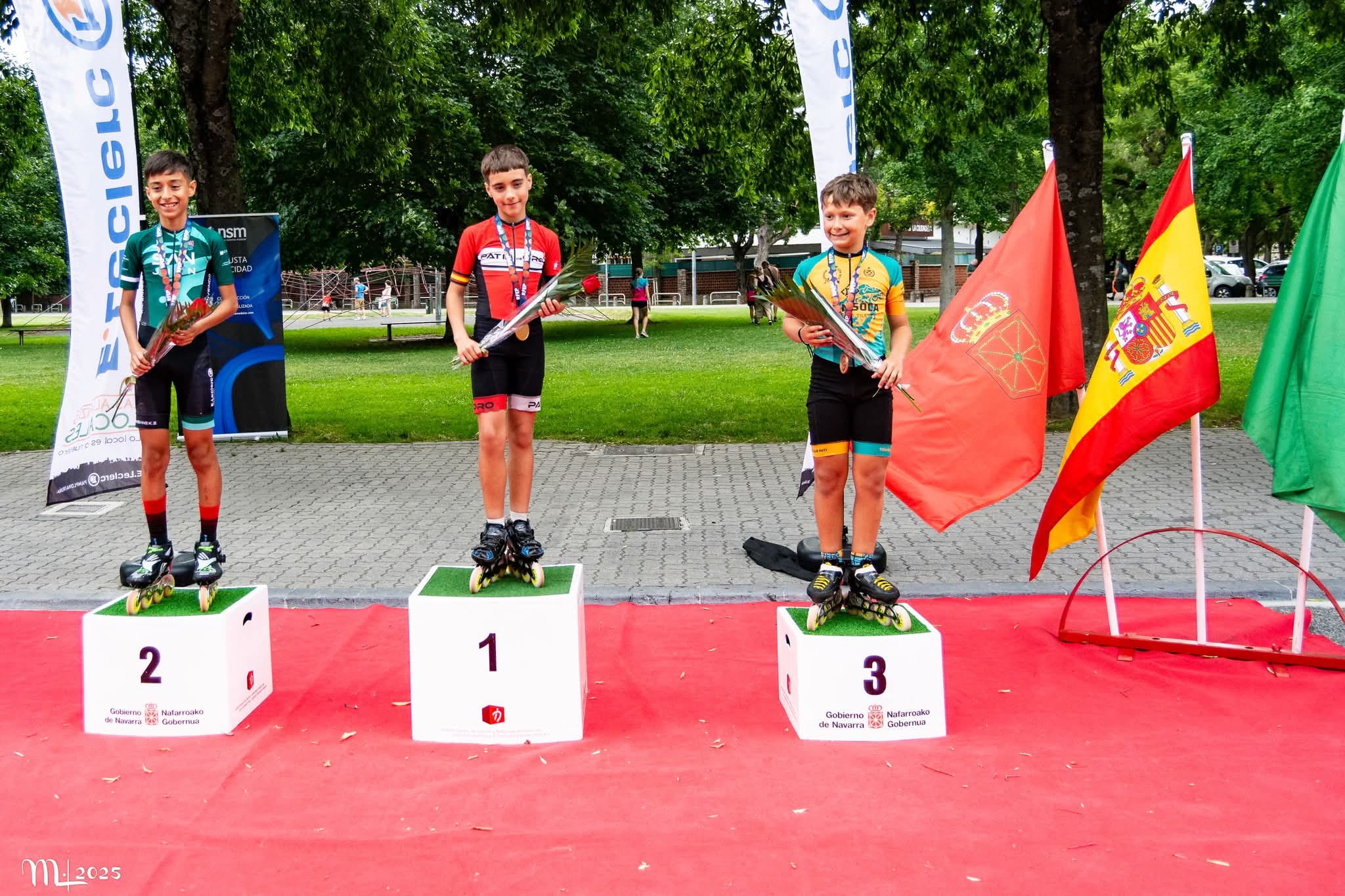 Las medallas navarras las consiguieron Xabier Guallar Pardo (San Juan), Plata en 1.500 Línea y Plata 3.000 Puntos alevín; Greta Arriezu Ochoa (Txantrea): Oro en 8.000 Eliminación, Oro en 430 Sprint, Oro en 5.000 Puntos y Plata en 100 sprint infantil; Iosu Blanco (Amaya), Bronce en 100 Sprint infantil; y José Fernando González (Txantrea), Bronce en 430 Sprint infantil.