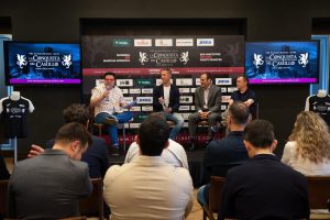 En la presentación de la prueba también participaron Raúl Santos, de Caja Rural de Navarra, Samuel Jiménez, de parte de Goikoa de Sangüesa / Zangoza, Alejandro De la Rosa, en representación de Intersport, y Borja Fernández, de Joma.