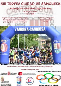 XIII Trofeo de Patinaje Velocidad Ciudad de Sangüesa / Zangoza que se celebrará entre las Calles Paseo Cantolagua, Prolongación Paseo Cantolagua, Prolongación Campo Fútbol hasta accesos campo futbol, Ongay y Baratiñones.