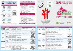 La Mancomunidad de la Comarca de Sangüesa, en colaboración con el Departamento de Salud del Gobierno de Navarra, organiza un año más la campaña de prevención de accidentes de tráfico «Voy y Vengo» 2024. Está dirigida al público general residente en la Comarca de Sangüesa a partir de los 16 años y cubre las fiestas patronales de Aibar, Cáseda, Eslava, Gabarderal, Gallipienzo, Liédena, Lumbier, Sangüesa y Yesa, además de las de Aoiz y Tafalla. El precio del billete se establece en 2,75 euros, que podrá comprarse exclusivamente a través de la web www.comarcasanguesa.es, como ya se hizo por primera vez el año pasado.